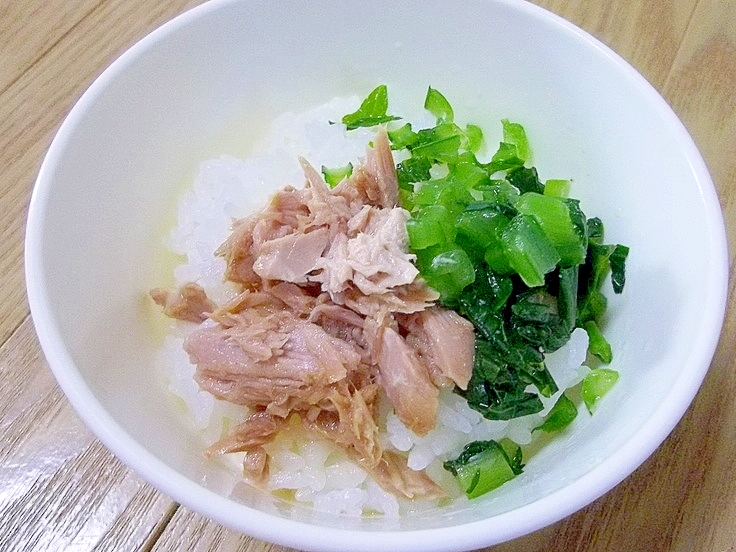 幼児食 レンジで簡単 ツナと小松菜のさっと煮ごはん レシピ 作り方 By へんてこぽこりんママ 楽天レシピ